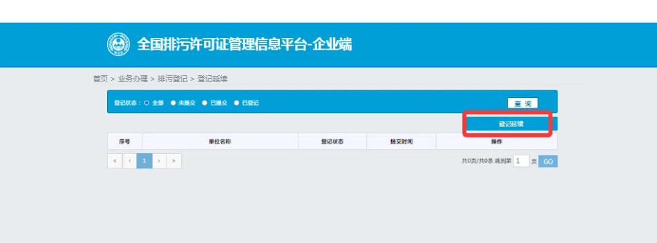 未超有效期的排污单位应在有效期届满前20日内进行登记延续。操作步骤如下: